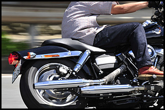 今回のテストに使用した車輌は2009年型のFXDF。独特の2-1-2デュアルマフラーではなく、ダイナ系では一般的な集合部のないオーソドックスな北米マフラーに改装してある。さらに燃調をやや濃い目に調整できるダイヤル式エンリッチメントデバイス、スクリーミンイーグルのエアクリーナーエレメントも装着。一度に変更した要素が多いが、これが北米マフラーを最も楽しめるパッケージとのことなのでそれを尊重することにした。
