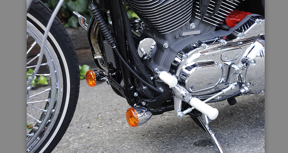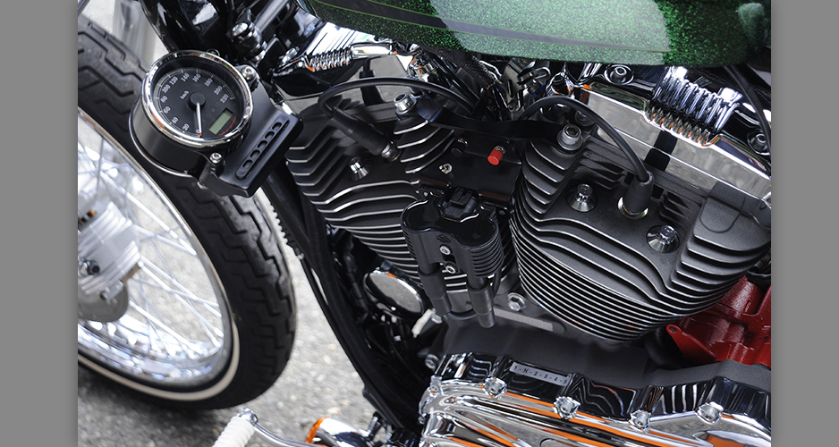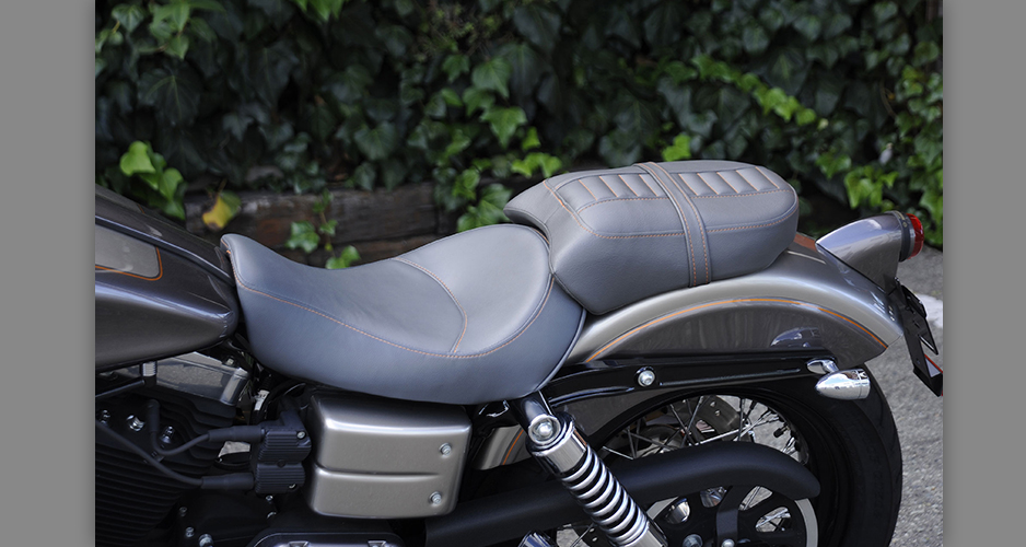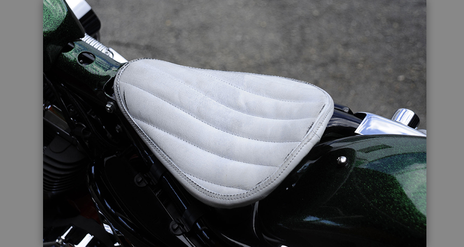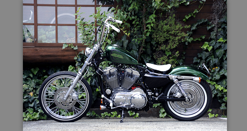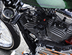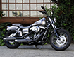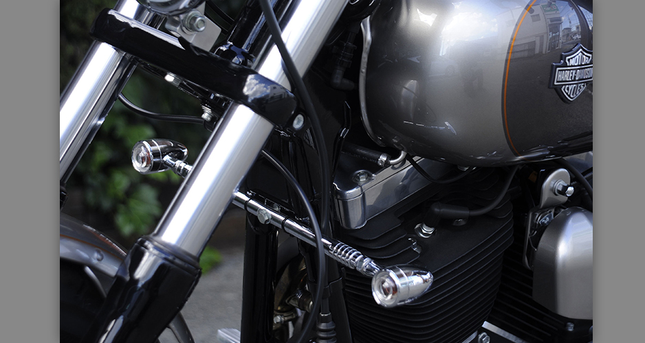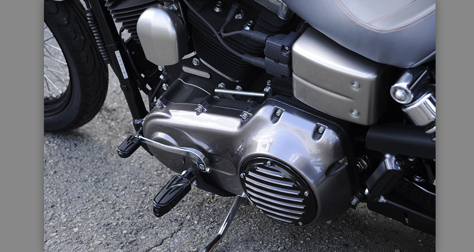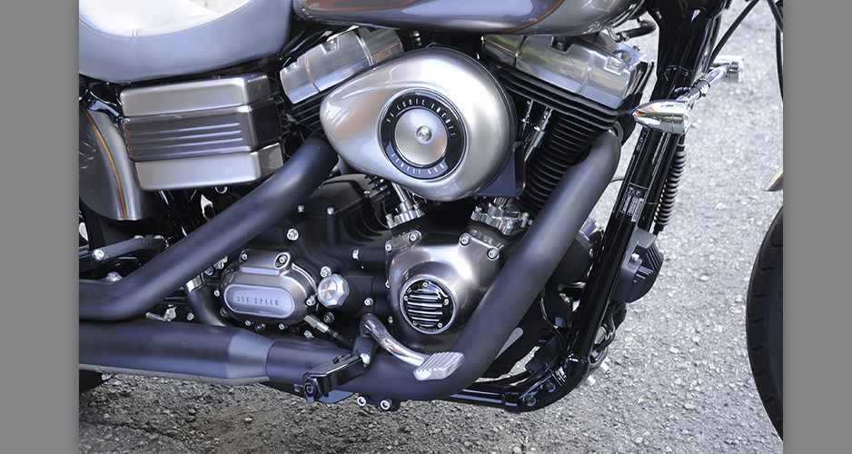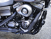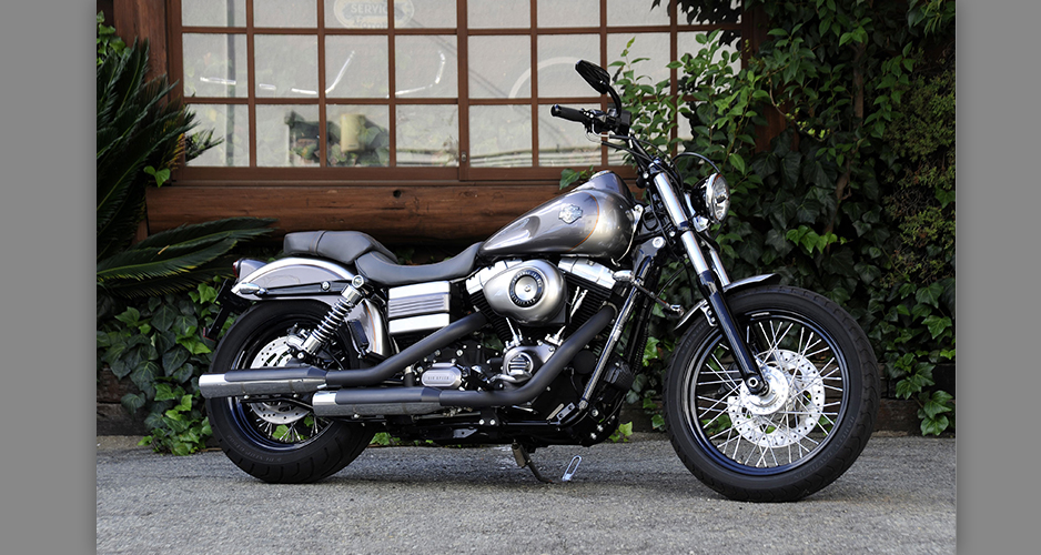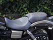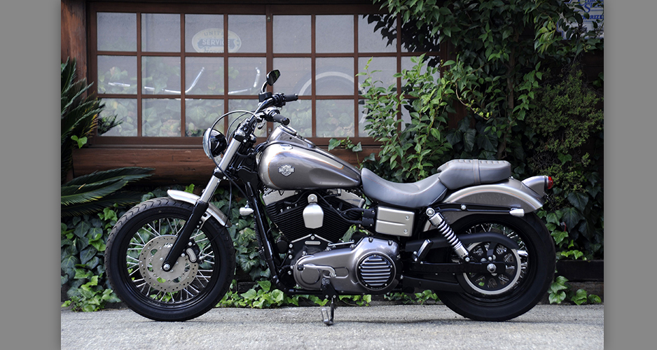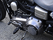 ダイナ系のラインナップにあって、もっともシンプルなシルエットを持ち、カスタムベースにうってつけのストリートボブ。ユーザー層は若い世代が中心で、チョッパー系のカスタムが主流だが、この一台はノーマルのシルエットを崩さぬまま、全体的なペイント変更を主に、少ないパーツ交換で効果的なイメージアップを測られた、大人のカスタムである。センスと技術力の高さが成し得たシックなシルエットが魅力的な一台だ。