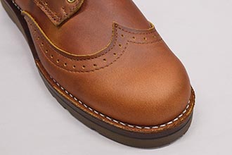 油分が多いため、しっとりとした風合いも特徴で、他のレザーでは味わえない表情豊かな経年変化を楽しむことができる。ブリティッシュ・タン・ドマーネはウエスコがラインナップするすべてのモデルに使用可能で、もちろんラフアウトでも使用することができる。