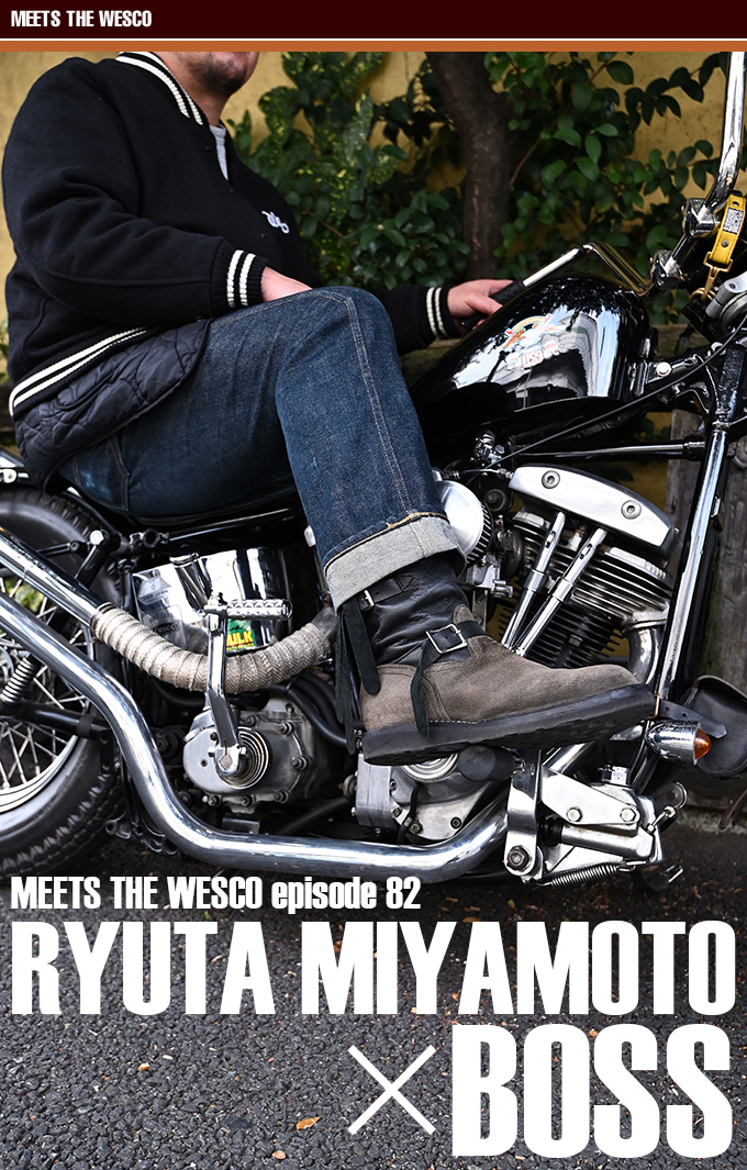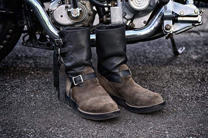 そう話す彼が今日履いているブーツは、2016年にリリースされたゴートスキンボスをイメージして製作したボスで、5インチロングのトップストラップはトリプル仕様にカスタムされている。この他にボスを5足、さらにジョブマスターとロメオも所有しているというウエスコフリークでもある彼は、ショベルに乗るときは必ずウエスコを履いている。
