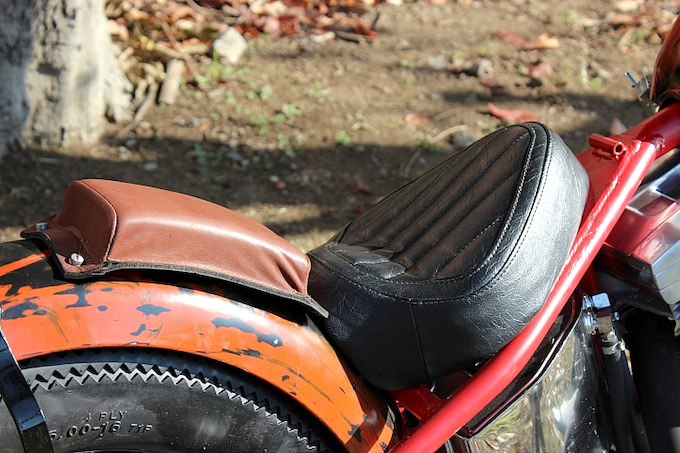 見るからにオールドスクールテイストが漂うスタイルだが、搭載されるのはエヴォリューション。オープンプライマリーなどチョッパー的要素はしっかりと装備されている。