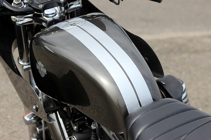 独特な丸みが美しいラインを描き出すタンクもストーツ製。その造形美を殺さぬようペイントはシンプルなものとなる。
