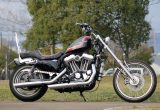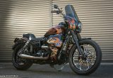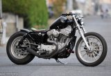 もともとは1カム(現行ではツインカム)のビッグツインに対して4カムシステムを採用し、コンパクトな車体と相まってハーレーダビッドソンのスポーツモデルとして進化を続けてきたのがスポーツスターだ。しかし、そのコンパクトな車体はチョッパーベースとしても最適なもの。アイアンの時代から、これまで数多くのチョッパーが生まれてきた。そうした意味では、ジェットが製作したこの1台はまさに、スポーツスターカスタムの王道とも呼べるもの。フロントフォークを大胆に縮め、リアサスペンションもショートサスに加えてレイダウン加工を施すことで、車高を大きく下げている。そして外装にはナロースポーツスタータンクをハイマウントで搭載し、シートは薄めのソロ、ワンオフリアフェンダーはギリギリまで短くされている。こうして完成した車体は、純正スポーツスターよりもさらに小さく、クールな佇まいを見せている。また、エンジンはストックながらも、ミクニHSRに抜けの良いドラッグパイプを組み合わせることで高いパフォーマンスを発揮しているのも見逃せないポイント。チョッパーながらもベースはあくまでもスポーツモデル、そう言わんばかりのセッティングだ。