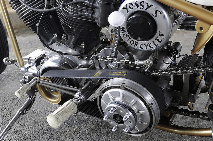 定番のプリモ2インチオープンプライマリーにフットコントロールはワンオフで製作。ジョッキーシフトを採用。