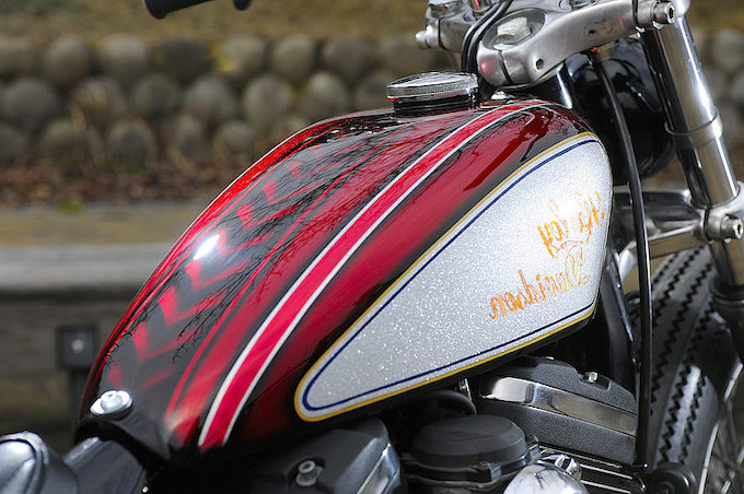 優美なラインのオリジナルタンクにはフレークをふんだんに使ったSwithによるペイントワークが施される。