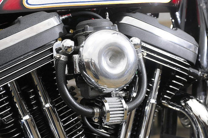 キャブはCV。カバーはオリジナルパーツである小振りなラウンドタイプ。エンジンとのバランスもよい。