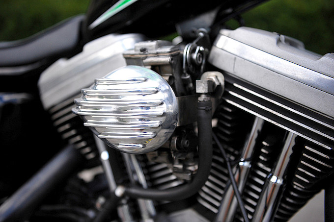 フォーク製のエアクリーナーは小ぶりで車体のイメージを崩さず使用可能。エンジンとの統一感を高められる点もポイントだ。