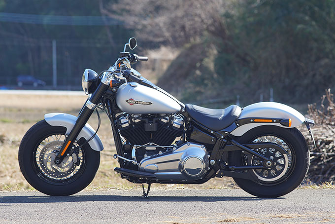 戦後モデルをベースに作られた、ボバーカスタムを彷彿させるシルエットが特徴的なソフテイルスリム。初期モデルの登場から8年の年月が経ち、すでにオーソドックスな印象すら持つが、ソフテイルスリムもまた、ファミリーの他モデルと同じように、2018年からミルウォーキーエイトエンジン+新型ソフテイルフレームへと移行され現在へと続いてきている。
