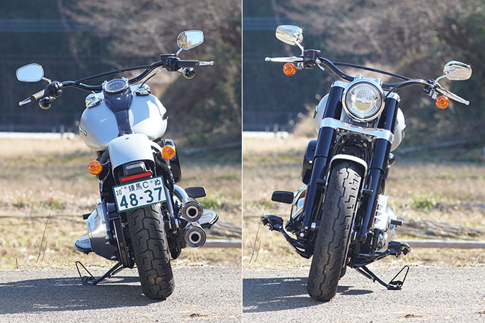 初代ソフテイルスリムと比べ現行モデルは、全長で40mm、軸距は5mm短縮されており、車重は14キロから軽量されていた。それらは取り回し及び運動性の向上に如実に現れており、ちょっとそこまで乗るというシチュエーションでも使いたくさせてくれる。一週間程生活を共にしたソフテイルスリムは、個人的な感想として言えば、これまで試乗テストを行ってきた現行モデルの中でも好印象を抱けるものであり、正直なところまだ当分乗り回したいと思っていたことを白状しよう。ただ、ソフテイルスリムを返却した後、自分が感じた”良さ”を俯瞰して考え直してみた。