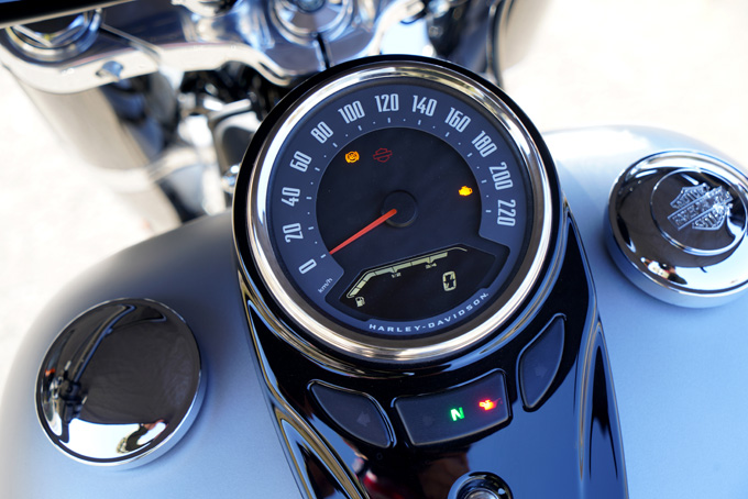 さらにはミルウォーキーエイト107エンジンを採用しているソフテイルスリム。1,746ccVツインが発生する強力なトルクでありながらも、より排気量が大きいミルウォーキーエイト114と比べると、より大胆なスロットルワークが可能であるがため、その走りはまさに快活そのもの。このスポーティーな楽しさは、114エンジンを搭載するモデルが増えてゆく中において、あえて107エンジンを採用しているのかもしれないと思わせるものだ。