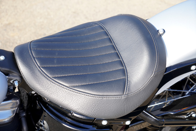 ビンテージモデルのスプリングサドルを連想させる、タックロールスタイルのソロシートを装備。シート高は660mmで、他のモデルと比べても低く抑えられている。