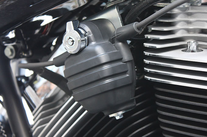 それは、歴史の系譜。今でこそ主流となっているダークカスタムだが、かつてクロームパーツを多く配したモデルがラインナップを埋め尽くしていた1990年代中期、あたかも時代を先取りするかのようにデビューした真っ黒なソフテイルモデルが存在した。それが FXSTSB バッドボーイだ。FXB スタージスのブラックボディをソフテイルに導入、スプリンガーフォークとの組み合わせは見る者に強烈な印象を与え、その名の通り“異端児”としてラインナップに君臨、異彩を放ち続けた。その流れは FXSTB ナイトトレインへと受け継がれ、「どこまでも真っ直ぐ走りに続けるダークモデル」として若者の心を掴んだ。2010年ラインナップからナイトトレインが消えたとき、一部のファンから「残念」との声があがったのだが、今回デビューしたブラックラインはその流れを途切れさせない“伝導者”としての存在意義を持っているのである。