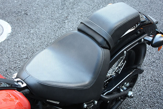 インプレッションでも述べさせていただいたとおり、基本的に“曲がる”ことに重きを置いていないブラックライン。そのスタイリングはロー&ロングというカスタムテーマにも現れており、細く長くまとめられた直線番長フォルムに仕上がっている。それゆえ、オーナーとなるべき人物はこのモデルが発する哲学に沿った“トンがった生き方”をする人にことふさわしい。「日本の道路事情と照らし合わせると……」なんて講釈なんてクソくらえ、自分の信念を曲げることなく突き通すガンコな貴方にこそ、曲がることを度外視したこの一台がよく似合う。さらにチョッパーカスタムを施せば、もう手が付けられないバイクになること請け合い。ヴィンテージな雰囲気と現代版パーツを併せ持つブラックラインを自分色に染め上げれば、唯一無二の愛車(とも)となることだろう。