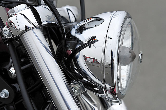 違和感のように思えるが違和感ではない――。考えをおよばすに、たどり着くのは“ファクトリーカスタムモデルであること”という点だ。通常はオーナーのバイクライフやスタイルに合わせてノーマルモデルに手を加えていくことがカスタムなのだが、ファクトリーカスタムモデルはメーカーが「我々が美しいと思うスタイル」という主張をもとに汲み上げられた一台である。カスタムの本来の目的とは真逆の言い方になるが、“オーナーに合わせてバイクを変える”のではなく、“オーナーがバイクに合わせる”ことが前提となっている。スタンダードなモデルと比べるなんてナンセンスというわけだ。