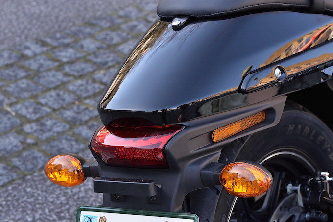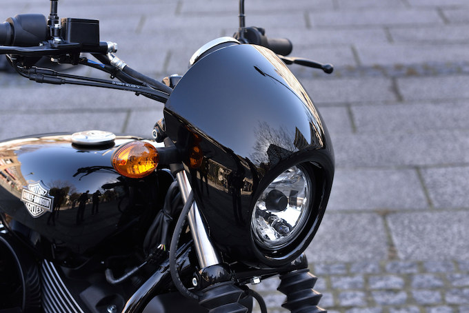 試乗した横浜の街並みは、まさしくこのバイクのコンセプトである“アーバンモビリティ”にうってつけの舞台。フロント17/リア15インチというハーレー初のタイヤセットアップが生み出すハンドリングは軽快そのもので、230kgという軽量な車体と相まってタイトな曲がり角でも大きなコーナーでも意のままに操ることができる。街中をしばらく流し、首都高速へ。料金所を過ぎて上り坂のランプで全開をくれてみた。グオオッという排気音とともにすさまじい加速。2速、3速、4速とシフトアップを素早く繰り返し、あっという間に制限時速を大きくオーバーしたまま本線に合流。スロットルをパーシャルに戻すと荒々しさはふっと消え、振動もないジェントルなクルージングへ。こりゃ楽しいゾ!