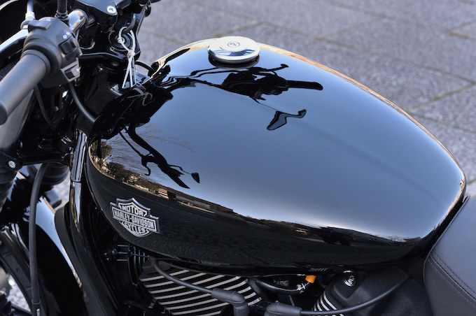 このマシンの開発コンセプトは①アーバン・モビリティ ②オーセンティック・ハーレーダビッドソン ③ダークカスタム・ソウルの3つ。都市の移動手段というイメージ。真なるハーレーダビッドソンであること。現在人気の高いマシン全体をブラックアウトしたダークカスタムシリーズ。35才以下という若いライダーをターゲットとし、日本を含む世界各国3500人の声を集めたうえで開発されたのだという。