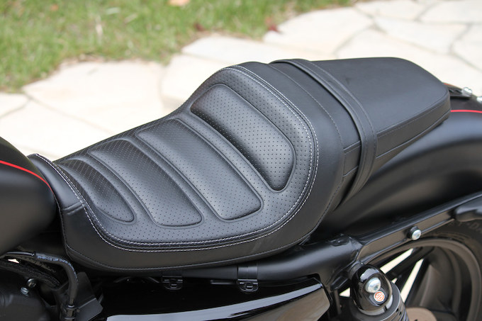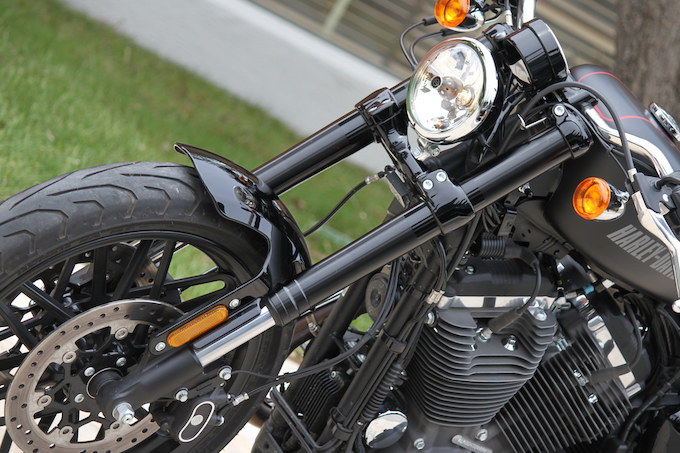 しかしながら同モデルのオーナーとなれば、身体に馴染んでくるうちに物足りなさも覚えてこよう。なぜならば、もう一段階上のパフォーマンスを秘めていることを随所で感じさせてくるバイクだからだ。とすると、「ステップは短めに……いや、バックステップ?」、「とすると、地面で擦らないようにマフラーはアップタイプを?」、「自由に体重移動できるシートに換えてみたい」、「何より、259kgという車重を少しでも軽くしたい」と、自分の身体や走り方に合わせたカスタムイメージがどんどん沸き上がってくる。「自分だけの特別な一台を手に入れるためのブラックキャンバス」というハーレーダビッドソンのダークカスタムというテーマにおける基本コンセプトが、頭をよぎった。