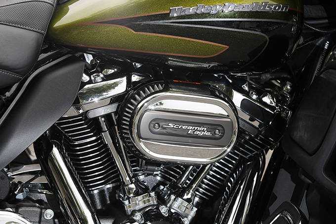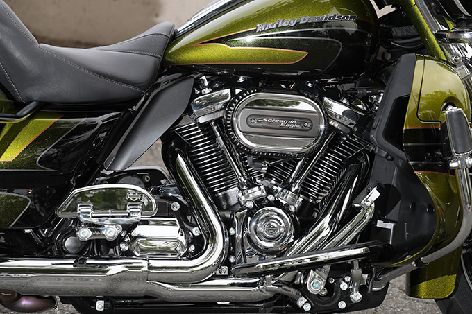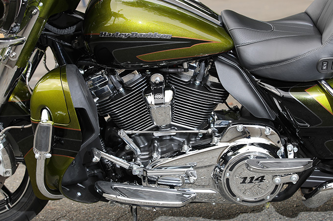CVO2機種(FLHTKSE、FLHXSE)には、スクリーミンイーグル・ツインクールド・ミルウォーキーエイト114が与えられる。排気量を1,745ccから1,868ccにまで上げ、ボアだけでなくストロークもUP。これは純正リプレイスキットでも手に入らないCVOだけのものだ。