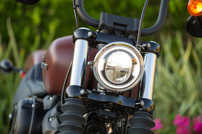シンプルなルックスの小径ヘッドライトだが、LED化され被視認性を飛躍的に向上。フロントサスペンションはインナーチューブ径49mmのSHOWAデュアルベンディングバルブフォークとなった。