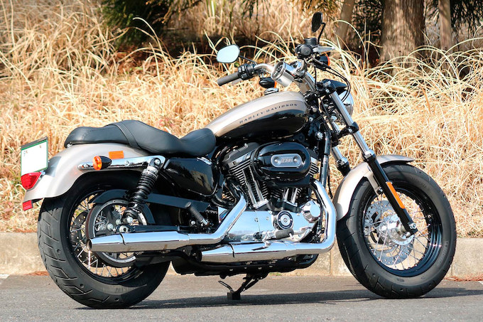 そんなライダーへの衝撃をやわらげてくれる前後サスペンションは、大きくバージョンアップを果たしていた。2015年から全スポーツスターに採用されたシングルカートリッジ式フロントフォークにプレミアムエマルジョンサスペンションの動きは申し分ないしなやかさで、ローダウンモデルゆえに衝撃の受け止め幅は決して大きくはないが、そのスタイルを鑑みると十分な成果を得られている。