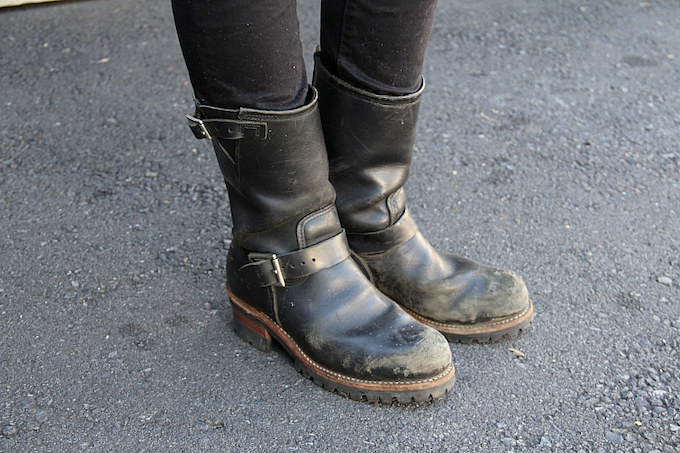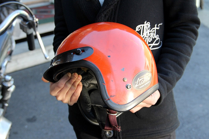 神奈川県厚木市のグリル&バー“リックス”はバイカーが集う店だ。お店は夫婦で切り盛りしていて、ご主人も1938年のサイドバルブを所有している。ウッドデッキには奥さんのヤレた雰囲気のショベルがマッチし、店内にある薪ストーブの暖かさと柔らかな灯りが心地いい。そんな場所でお客さんを笑顔で迎えてくれるのが、ここで紹介するさちえさんだ。ヴィンテージヘルメットを被り、ブラックでまとめたコーディネイトは何年もバイクに乗ってきたかの雰囲気を漂わせているものの、実際はまだ5年目だという。