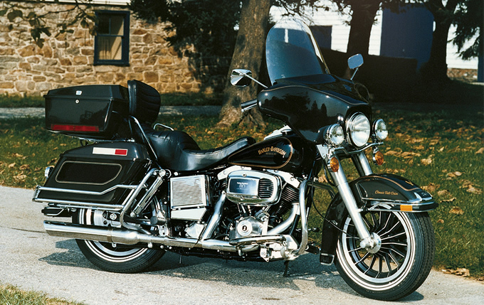 1978年、ショベルヘッドエンジンは、これまでの排気量1200ccからボア88.8×ストローク108mmの1340ccへと排気量アップ。80年までの3年間、ショベルビッグツインエンジンには2つの排気量モデルが存在した。79年モデルでは両排気量モデルともにラインナップが拡大され、FL系はウルトラクラシックの前身とも言えるこちらのFLHCエレクトラグライドクラシックが登場した。キングオブハイウェイの名にふさわしい走りに特化した豪華装備を誇っている。