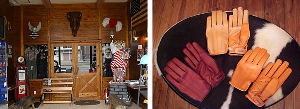 お店のテイストはオーナーの好みがはっきり分かる、ルート66の道中にありそうなアメリカン・テイスト。店頭には休憩場所と駐車スペースが設けられており、また両隣りのお店は週末&祝日が休業日なので、そこの駐車スペースも利用させてもらえることから大人数での来店もOK。ウッドを基調とした店内には、オリジナルグッズやオーナーこだわりチョイスのアイテムが所狭しと陳列している。特に目をひくのが各商品のカラーリング。黒や茶色が多いレザーアイテムにワインレッドやブルー、グリーンを取り入れるなど、女性ならではのファッショナブルな視点は見逃せない。さらにコスメまで扱っており、他の量販店では見られない一面も。ライダーズファッションのバリエーションを加えたい人にとって、魅力あるショップだと言える。