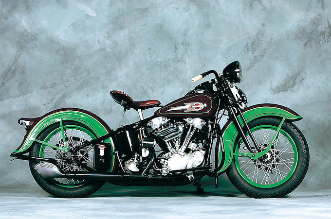 豊富な工作機械を揃えたファクトリーからカスタムパーツ製作のイメージ強いサツマサイクルであるが、レストレーションもご覧の腕前。これは初代36ナックルであるELのフルオリジナル! 赤茶×グリーンの外装ペイントも当時のものと同じ。AMCAの認定書付きで、製造ナンバーは36年の最後のナンバーだという。オーナー/T.K