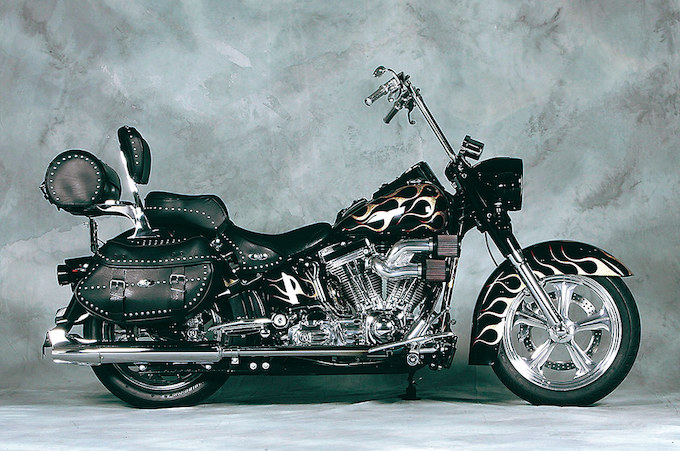 コンセプトは「最速高級ツアラー」。エンジンは純正クランクを加工し、腰上にはS&S VFI 2032ccを搭載、怒濤のパフォーマンスを秘めている。その心臓部を際立たせるべくエンジン、ミッション、プライマリー等をフルポリッシュ。「オーナーはガンガン飛ばす人」という人柄に合わせ足周りや操作系はデザイン、機能性共に定評のあるPMパーツをセットアップする。オーナー/大友研一