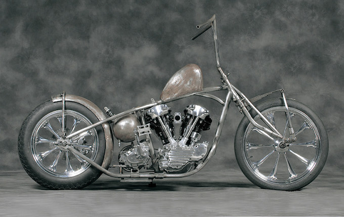 37ナックルをベースに、未完成ながらも見所が多いこのマシン。コンセプトはズバリ「NEW+OLD SCHOOL」。オールドモーターの象徴であるナックルモーターを使い、アルミビレットホイールなどの最新パーツで武装。しかしなんと言っても最大の見せ場は、ワンオフにて製作されたリーフスプリングフォークであろう。ビレットホイールとのこの組み合わせはかなり斬新だ。完成した姿に胸膨らむ期待の1台。オーナー/堀川健二