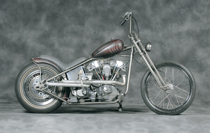 現実的に普段の足として使うことが楽に、しかも気兼ねなく走れるチョッパーというコンセプトのもとにプロジェクトがスタート。79ショベルをベースに全体のバランスに細心の注意が払われている。トータルでマットな質感に統一し、ブルオリジナルらしいクールなテイストにフィニッシュ。ディテイルにも注目だ。フロントミニドラムの処理に、マフラーエンド、エアクリーナーの彫金もお見事! オーナー/ASANO