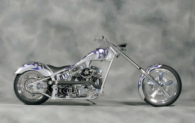 毎日乗れるハイエンドチョッパーをテーマに製作される。103ci.(1680cc)ショベルモーターを搭載し、ロングフォークは野卑にならない絶妙な長さに設定。メタリックシルバーで塗られたフレームのステムガセット部に注目したい。デッドスペースとなる箇所を敢えてデザインすることでトータルクオリティを上げている。手作業でしか成しえないエグリ加工の施されたタンクやフェンダーにケンズの強さを見る。オーナー/篠田