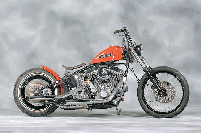 荒っぽいテイストにモトブルーズの個性が光る。ベースは85FXST。コンセプトはストリートクルーザー。お気楽に流すことができるという意味でのクルーザーである。カスタムメニューはいたってシンプルなもの。スポーツスタータンクの取り付けに、サイクルフェンダーのセッティング。モトブルーズオリジナルの吉田ハンドル、あとはサドルシートの取り付けといったところ。力の抜けたこんなマシンこそ、街によく似合う。オーナー/藤田友浩