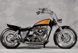 実にコンパクトに仕上げられたマシンと言える。ストレッチされたフレームダウンチューブとロングフォークのセットアップ。アンダーフレームが上がることなく水平を保っているスタイリングはビルダーの緻密な計算ありきで実現されたもの。詰められたホイールベースはリアフェンダーをカットすることによってリアタイヤの存在感を強調している。またショートタイプのアップスイープマフラーもベストチョイスと言えるだろう。