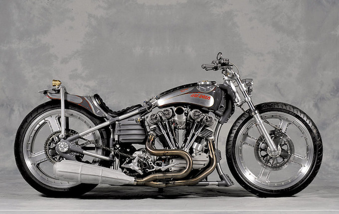 2008年に行われたS&S 50th WORLD BUILD OFFでワールドチャンピオンに輝いたStG NAUTILUS。S&SエンジンにホットドックオリジナルのEFIとキャストで製作したRCロッカーカバーを装着。ラグ風のアルミフレームはグレーのアルマイト処理後にリベットを打ち込んだかのギミックが加えられている。オールドセリアーニにスピンロック式ワンオフホイールなど、世界の頂点にふさわしい超絶カスタムに仕上げられている。
