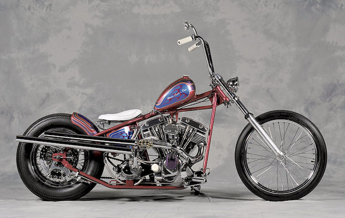 ビルダーの松永氏曰く「スタンダードなチョッパーに軽やかなテイストを入れてみました。今の若い世代の人たちが乗れるリアルスタンダードを目指しました」。MCDの感性がトータルで息づいているマシンと言える。タンクのマウント位置にエイプハンガー、センターマウントのポーカーパイプなど、すべてが見事にバランス取りされている。リアブレーキには制動力を考慮してPM製の4ポットが取り付けられている。オーナー/高野