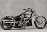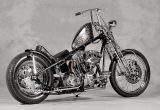 カスタムを楽しんでいるかのようなショップスタンスが伺える1974ショベルチョッパー。「走るフリスコ」をテーマに独創的なフォルムにまとめられている。フューエルタンクはサイドからだと確認しづらいが、極端にナロードした形状に製作されている。そしてリアフェンダーの処理も面白い。エッジが効いたエンド部のデザインにクロームステーを合わせている。基本を抑えた上でのスパイスが同店の神髄と言える。オーナー/レインマン金井