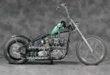 S&Sブロックヘッドモーターを搭載したこのチョッパー。メッキ加工のスムージングフレームにキャンディグリーンのペイントが施されたエクステリアを装着。アーチの深いディープフロントフェンダーと同じくディープリアフェンダーの造形。さらに大径ヘッドライトとフューエルタンクのバランスの妙。見れば見るほどに、引き込まれるマシンである。この写真からもしっかりと作り込まれていることが見て取れるはずだ。オーナー/SUDA