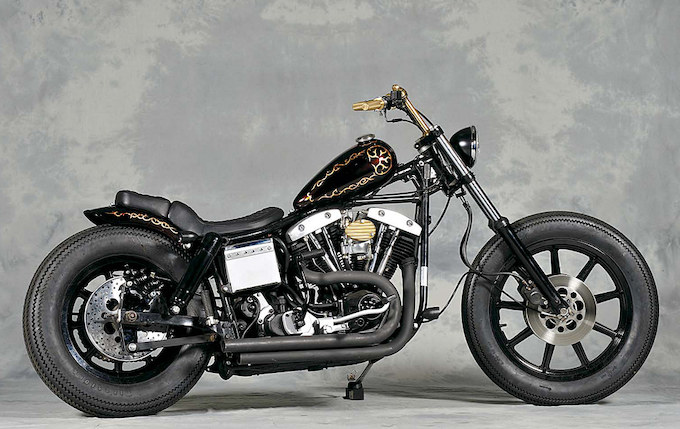 ストックの4速フレームには全く手を加えずに、バランス良く仕上げられた1981年式ののFXS。引き締まった印象を与えるべく前後キャストホイール、マフラーなどをブラックアウト。また野暮ったいリアショックをブラックにすることで上手く存在感を抑えている点にも注目したい。タンクからリアフェンダーへの流麗なラインも秀逸だ。ソロ&ピリオンシートのコンビがこのマシンにはベストな選択である。オーナー/浦島誠二