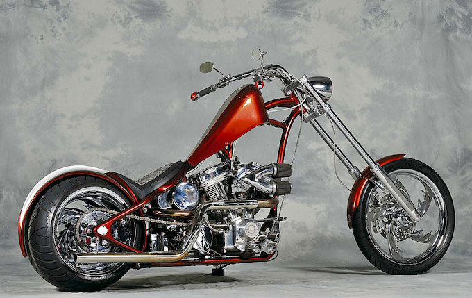 数多くのコンプリートモデルをラインナップするロデオモーターサイクルのSwedish 330EVOカスタム。パワーユニットはS&S製124ciのビッグEVOモーターを搭載。グースネック化されたシングルダウンチューブフレームにリアの330ワイドタイヤ、6速ライトサイドトランスミッションが組み込まれたハイエンドカスタムであり、外装はワンオフにて製作されている。リアフェンダーエンドも見逃すな! オーナー/武藤厚司
