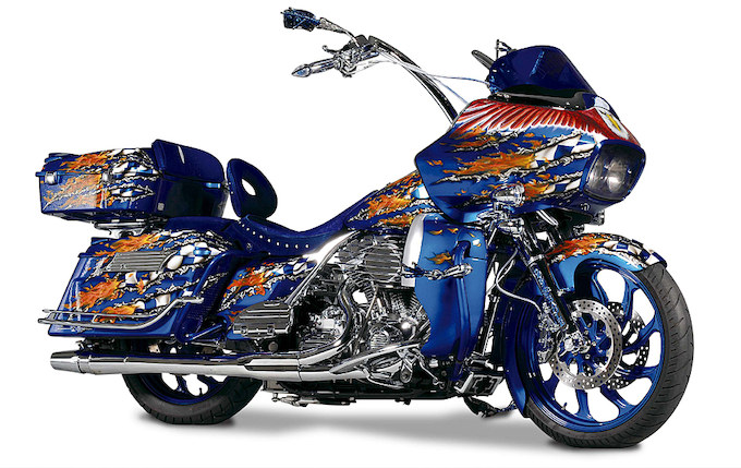 三重県のATTRACTが持ち込んだ怒濤のバガーカスタム。2007 FLTRをベースにイーグルモチーフのカスタムペイントが施されている。ラインナップの中でも最大のエクステリアを誇るロードグライドを巨大なキャンバスに見立て、フェアリングからサイドバッグに至るまで流れるようにカスタムペイントをデザイン。圧巻のペイントワークである。スクリーミンイーグル製110ciのポリッシュエンジンにも注目したい。オーナー/中北和登