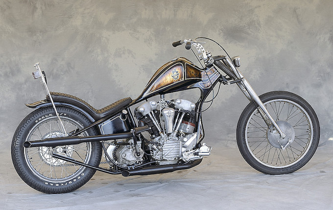 NIEGHBORHOOD滝沢氏が思い描いたコンセプトをエーシックス田中氏が具現化した渾身のナックルヘッドチョッパー。カスタム黄金期、70年代の米国西海岸を時代背景に設定している。スタイリングも同時代に製作されたアレンネス製のリジッドフレームを使用。モールディングは田中氏が担当し、フレームにまであしらわれたピンストライプはシェイキン清水の力作。オーナー/Shinsuke Takizawa