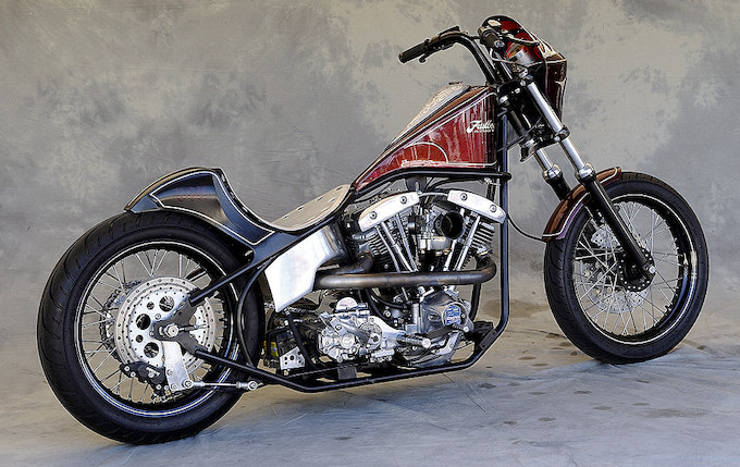 渾身のシートメタルが具現化する直線と曲線が融合したデザイン。そのエクステリアがスタイリングの要となるバイクガレージココロのショベルリジッドを紹介しよう。プライマリーサイドに取り回されるマフラーやフレームワークだけでなく、ステップやブレーキ周りも丁寧に製作されている。カテゴライズすることが無駄に思えてくるほどの強烈なオリジナルテイストが宿っている。