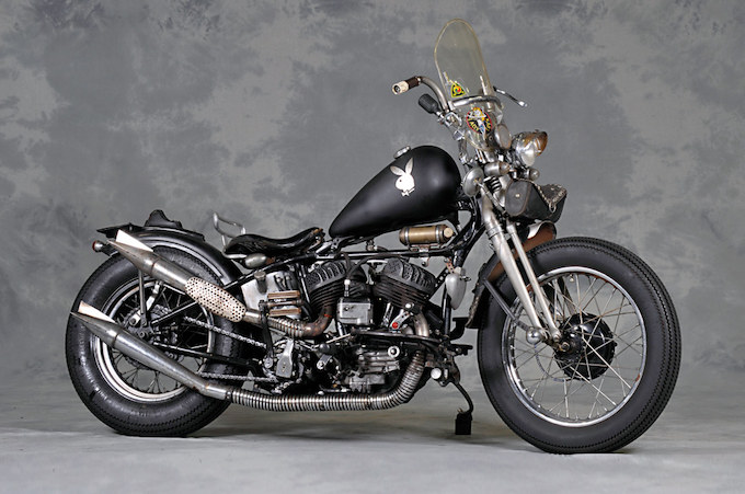 名古屋のチョッパーシーンを語る上で欠かすことの出来ない存在であるMASATO氏の愛車である42WLA。バイカームービー“WILD ONE”に出てくるマシンがイメージソースだと言う。希少なビンテージパーツを使ったオールドウインドシールドやマフラー、そしてタンクのマウントがこだわりである。至る所に施されたスロッテッド加工も必見。オーナー/MASATO