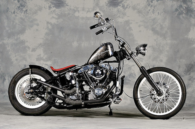 1984年式のFXEFがベースとなるコチラのチョッパー。ハードテイル化とコンパクトなエクステリアに換装することで、ストックのイメージが払拭されている。フロント21/リア16インチのホイールはホワイトにペイントされている。コンセプトはウミガメとのこと。そう言われてみれば、ヘッドライトのマウント位置やハンドル&ライザーの形状、さらカラーリングなどからコンセプトのウミガメを感じることができる。なるほど、納得の出来と言える。