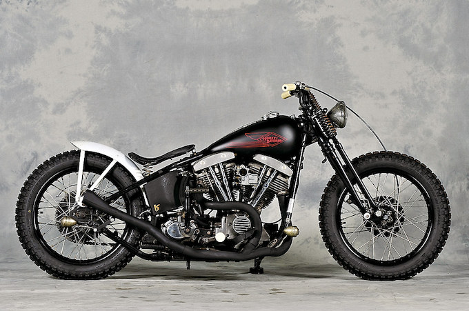 福井県敦賀市からエントリーを果たしたSOUL TO SOULが手掛けた1977年式FLHをべースとしたボッバー。74スプリングフォーク、前後に配されたトレールタイヤ、ナロードされたファットボブタンクで表現されるのは、往年のダートレーサーの雰囲気をまとうチョッパーである。マットブラックでペイントされたフューエルタンクからは何か只ならぬ印象を受ける。同じくマットブラックの2in1マフラーも凝ったディテイルである。オーナー/鈴木元浩