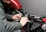 テーパーローラーベアリングを採用しているスポーツスターのメンテナンス法をチェック。遊びの確認とグリスアップが不可欠だ。