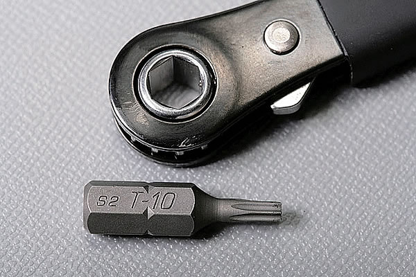 インジケーターランプハウジングの着脱に必要なトルクスのサイズはT10。車体周りに使われるものよりはるかに小さいが、いざというときのために準備しておきたい。