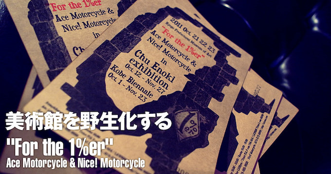 エースは今期ニューオーダーショーでお披露目した1946ELナックルヘッドと1966FLアーリーショベルなどの計10台を展示。一方、ナイスは新作のナックルチョッパー2台に加え、1947年式ナックルベースのドラッグレーサー “BLACK KNIGHT” に、スパイダーペイントがアイコンとなるナックルチョッパーなどの計10台を展示。合わせて20台のチョッパーが3階企画展示室回廊に展示されるというわけだ。また期間中は芸術祭 “神戸ビエンナーレ2011” が開催されているので、神戸の街はまさにお祭りムード。”For the 1%er” に “榎忠展” 、そして “神戸ビエンナーレ2011″と活気に湧く神戸の街を遊び尽くせ。