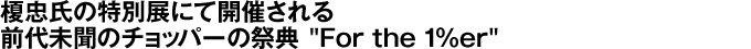 SPECIAL FEATURING ニューオーダーショー “雑感”にてお届けした、エースモーターサイクル徳山氏とナイス!モーターサイクルのボヘミアン岡田氏の対談で話題に上った、榎忠氏の特別展に両店のチョッパーを展示するという企画内容の詳細が決定したのでお伝えしよう。